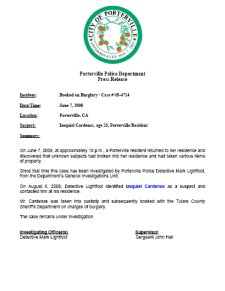 (Aug 06 2008) - Porterville Police Dept - Press Release