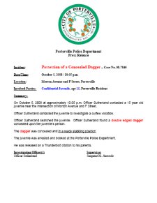 (Oct 05 2008) - Porterville Police Dept - Press Release