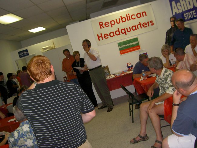Ms Laura Gadke, who is the chairperson for the Republican Party of Tulare County and mid-western regional director for the California Republican Party and who hosted this event, chimed in as well as she let Mr. Jones conduct a cell phone demonstration on how to call voters and get them to vote Republican and for McCain.